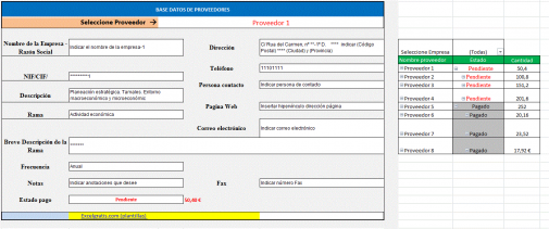 Libro de Excel gratis que nos puede servir de ayuda o referencia como base de datos de proveedores o si le deseamos la podemos modificar y adaptar según necesidades o preferencias.